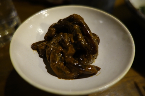 日本酒にあわせてカキ塩辛水イカ漬けをいただきました!すごい色ですね〜!熟成されているな〜って感じます!いただいてみると、、、日本酒にあう〜〜〜!超おいしいです!癖になりそう!