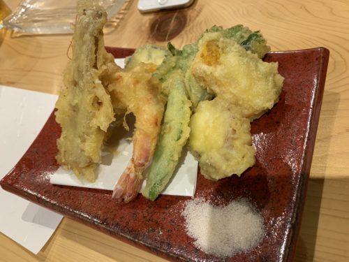 天ぷらをお願いしました!たっぷりの野菜と車海老、穴子と入っていました!天婦羅もとってもおいしい~!これで1000円に満たないというお得感!水仙さんすごいですね~!