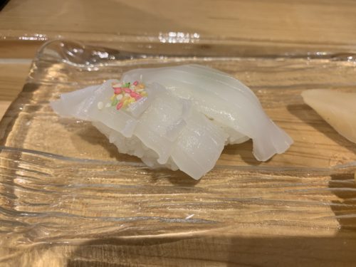 ここから握りをお願いします!まずはイカからいただきました!めちゃめちゃおいしい~!これで2貫で300円という驚きのお値段!すごすぎます!