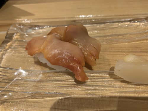 カンパチはズリの部分を出してくださいました!ズリまでいれてあるのがすごいな~。ズリはたくさん量がないはずなんですけどね~、すばらしい!脂がしっかりのって美味~!口の中に甘味が広がっていきます~!