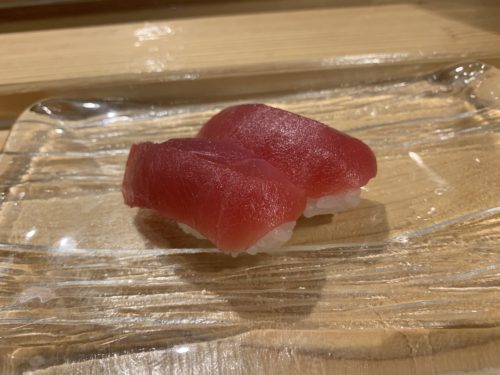 ここで赤身をいただきます。生のまぐろをしっかりとしいれることができるのはすごいですね~!しかもこのお値段!登場した赤身はとっても美しい~!そしておいしい~!いや~感動しました!