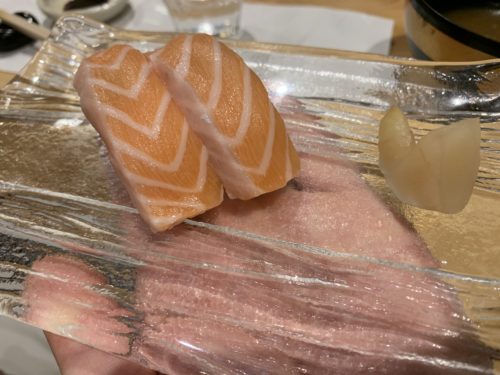 とってもおいしいのでまだまだいただきますよ~!続いて気になったサーモン!とっても美しいんですよ~!口の中でとろけます!お鮨屋さんでサーモンはなかなかなかったりしますが、私はおいしいので置いてほしいんですよね~!