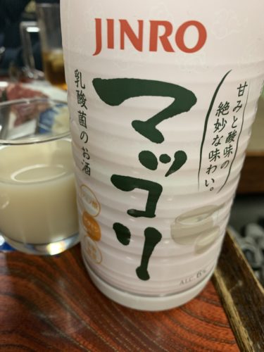 マッコリを一本お願いしました!マッコリとビールを割っていただくと飲みやすくっていくらでものんでしまいますね~!笑