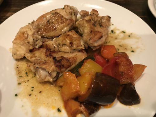 オリーブをいただきながら、チキンをいただきます!このチキンもめちゃくちゃおいしい~!さすがはIDEMOTOさんですね~!チキンは普通のから揚げとかにでてくるチキンではなく、鶏を一羽さばいたような小さな骨もついているくらい鮮度の良いお肉でした!これもあっという間にたべちゃうほどです!
