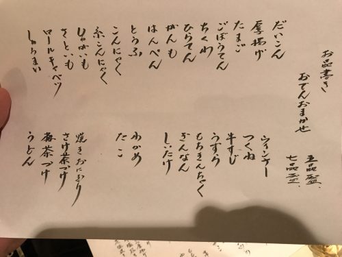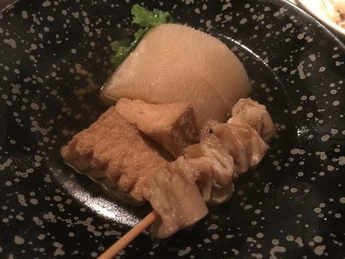トマトサラダでさっぱりしたあとはやはりおでんですよね~!7種盛りをお願いしました!もうお出汁の香りがたまりません!本当においしいお出汁ですよ~!おでんもどれもとってもおいしい~!もちろんすぐにおかわり合戦がはじまっちゃいます~!