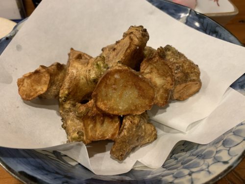なんと菊芋の素揚げがありました!菊芋って高級食材ですからなかなかお目にかかれません。お願いするとこれまた期待以上のボリュームで登場しました!まさかのこんなに揚げてくださるとは!素晴らしい!超美味しいです!