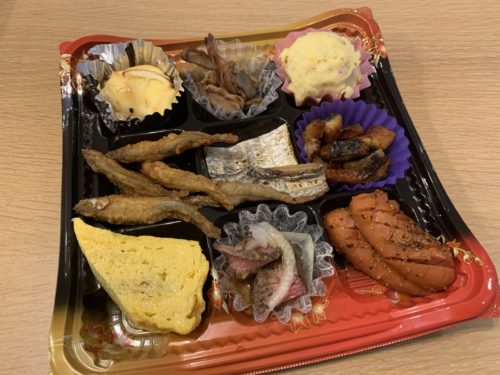 自宅に持ち帰ってまずはおつまみからあけてみました!おおお!すごい!なんと9種類のおつまみがはいっていました!