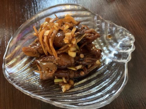 私も麦焼酎をいただきながら次は何を頂けるのかな~と期待が高まります。期待を超えてこられました!中華風のホタルイカ!山椒かな~、しっかりきいていてめっちゃめちゃ美味しい~!