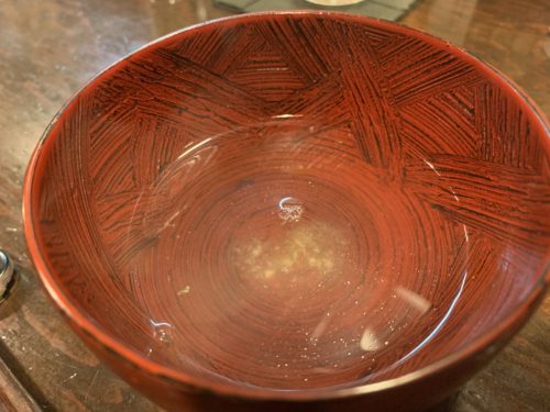 鯛の骨蒸しの余韻に浸っていると、お椀が登場しました。