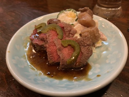 最後はアメリカ牛ステーキを!自家製ハラペーニョ添えで!このハラペーニョがほどよく辛いのでとってもお肉にあうんですよ~!