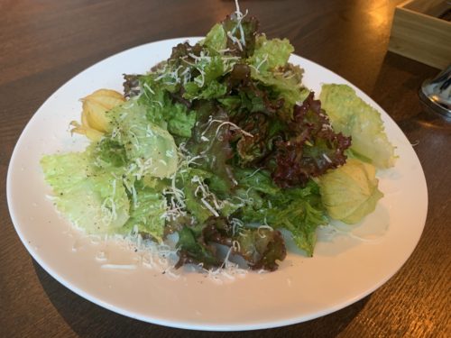 季節野菜のグリルとシェフズサラダのどっちにしようか迷っていると