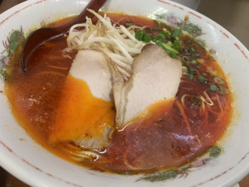 激辛ラーメンもついついお願いしちゃいます。真っ赤な色がたまりません!辛い~~けど美味しい~!