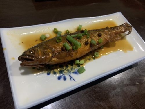 このたくさんのメニューの中からまずはこちらをお願いしました!鮎の甘露煮です。しかも子持ち鮎!このお料理に驚き、どれだけ感動することになるのかこの時は露知らず。
