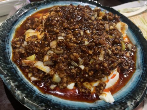 もう一つ秀逸なお料理がこちら!麻婆温奴です!温かいお豆腐に温かい麻婆がかかっています。麻婆がかかっているって表現があっているのかな?笑