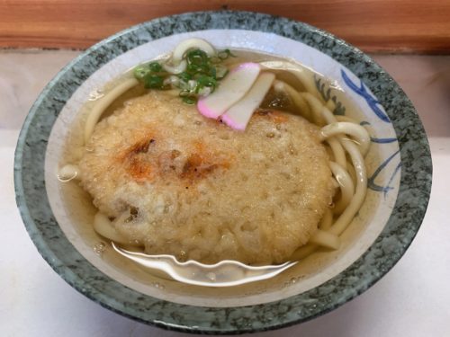 そこに天ぷらうどんがまず登場しました!大きな天ぷらがのっています!そしてうどんの出汁のいい香りが~!180円とは思えないおいしさですよ~!