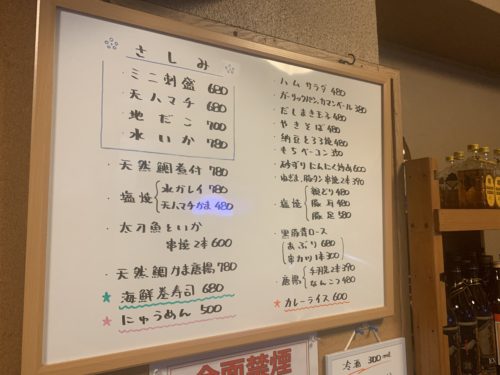 メニューを見てみると、おや?珍しいメニューが!天然ハマチ!最近天然ハマチなんてお目にかかることないですよね。