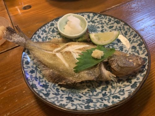 水カレイを塩焼きにしていただきました!こちらもほどよい大きさですね~!そしてこのお値段ですからね~!ほんとお値段以上ですね!いただくと、皮がもっちりして超美味しい~!最高!