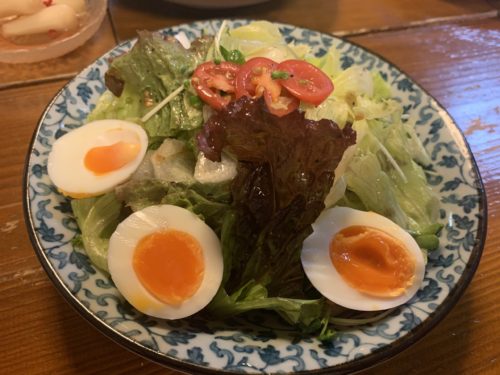 さっぱりしようということで野菜サラダを!茹で卵の色の鮮やかなこと!素晴らしい!