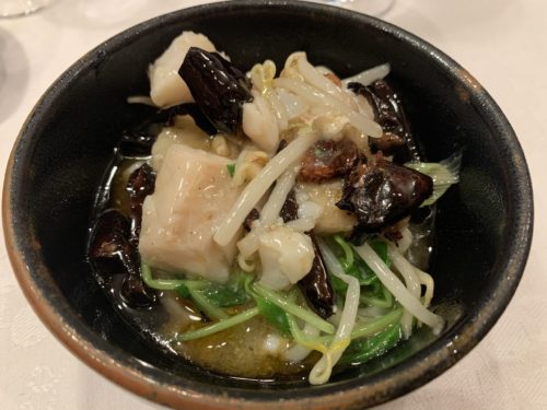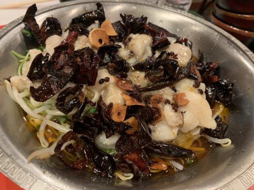 そして私にとって初めてのお料理、沸騰魚が登場しました!タラなんだそうです。たっぷりの唐辛子と一緒に油でいためるんだそうです。辛いのかな~と思っていたらそうでもなくめっちゃめちゃ美味しい~!タラもふわっと仕上がっています!ふっとうゆいと読むそうです!