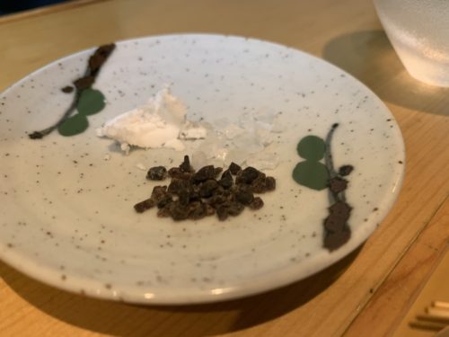 大好きな紀土も登場しました!日本酒と一緒にいただいたのがお塩!いつものゆで卵、、、いやいやゆで卵の味がする3億8千万年前の塩です!ということはゆで卵をたべるということは3億8千万円前のお味を楽しめるってことか!