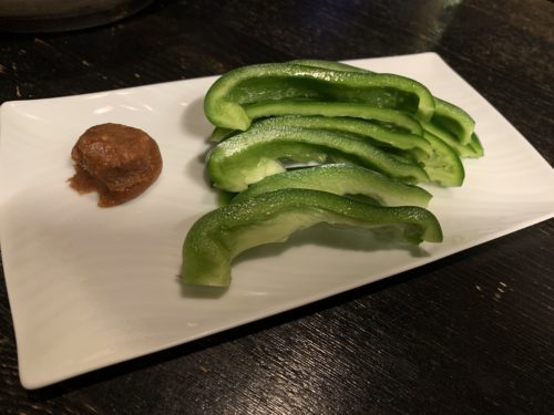 生のピーマン!味噌をつけていただいてみると、、、これがあまりのおいしさに一同びっくり!