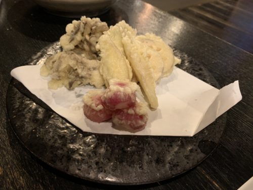 天ぷらは盛り合わせにしてくださいました。まいたけ、れんこん、みょうが、ラディッシュの4種類です!どれもとっても美味しい~!ラディッシュいいですね~!