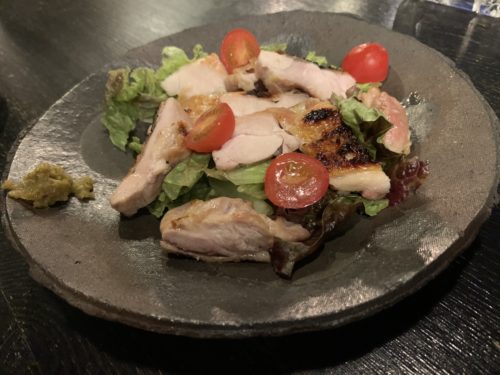 鶏肉を塩焼きにしてくださいました!皮がパリッとして超美味しい~!サラダもしっかりはいって彩がいいですね!