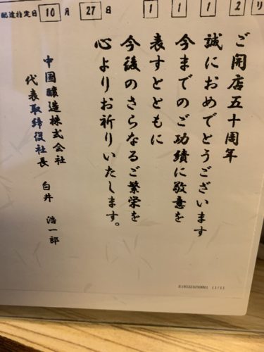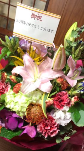 ふと店内を見渡すと大きなお花が!なんと開業50年をお迎えになられたそうです!おめでたいです!40周年の際も記憶しているのでもう10年以上通わせていただいているのか~と感慨深くなりました。
