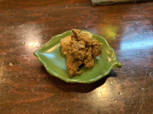 となんとタコの肝をだしてくださいました。初めていただくタコの肝!今朝釣ったばかりだったので鮮度も抜群!めっちゃ美味しい~!濃厚なのでお酒にあうあう~!