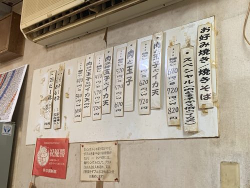 こちらもかなりの歴史があるお好み焼き屋さんのやまねさんです。お母さんが一人で切り盛りされています。月曜日がお休みですね。