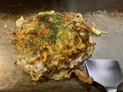 お話をしているうちにやまねさんのお好み焼きが焼きあがりました!