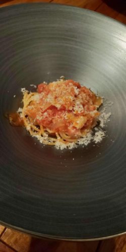 続いてパンチェッタとトマトソースを使ったマトリチャーナ!パスタ麺も美味しいし、パンチェッタの塩加減も抜群にいいですね!塩とトマトソースって個人的に最強です!