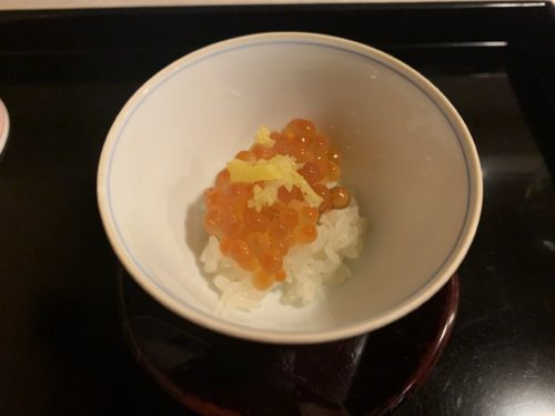 続いていくらごはんが登場しました!今年は筋子が鬼のように高いと耳にしていましたので、美しい色味に感動しつついただきました!いくらの粒をそのままたべたり、先につぶして食べたり、とにかくいくらのすばらしさに感動しました!