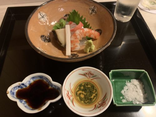 お造りはいつものように鯛、車海老、蒸しあわびです。鯛と簡単に言っていますが、選りすぐったこの鯛の一切れにはものすごい思いが詰まっていると思います。鯛ってこんなに美味しいんだ~って毎回感動します。