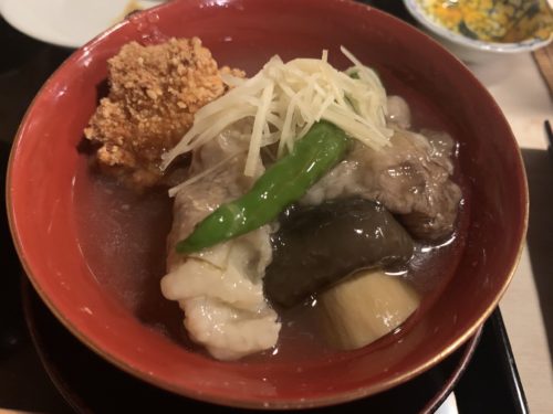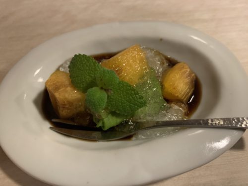 続いてはカブと穴子とふたこいものおかきあげ、広島牛のコウネの生姜あんかけです!ふたこいもって初めて聞きました。里芋の仲間なのかな?美味しい~!