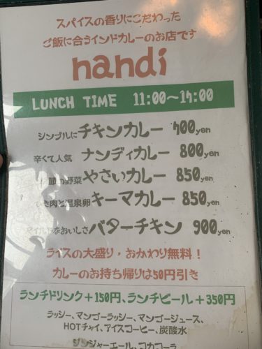 こちらのお店も引っ越してからなかなか足を運べなくなっていました。カレーのお店、ナンディさんです。以前は近所に住んでいたのでちょくちょく通わせていただいていました。美味しいビールを飲みながらカレーを食べていると楽しかった思い出があります。