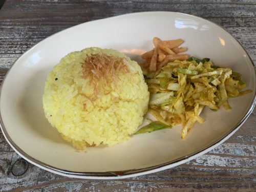 そこに、まずはごはんとキャベツのサラダが登場!このキャベツとカレーを一緒にいただくと美味しんですよ~!