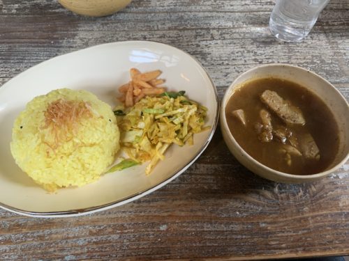 続いてチキンカレーが登場!いい香りがしますね~!さらっとした感じが食べやすくって好きなんです。