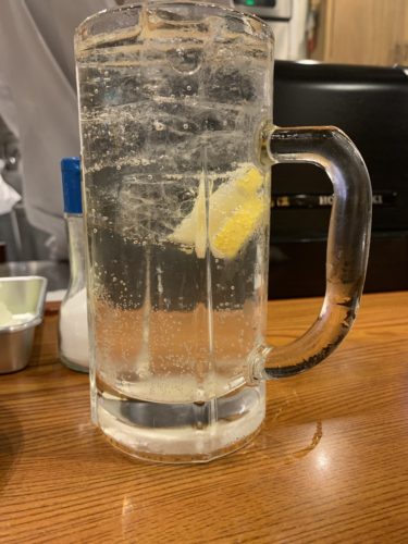 ここで焼酎をお願いします。メローコヅルエクセレンスという長期熟成の米焼酎です!これをソーダ割にするととっても美味しいんですよ~!串かつにとっても合います!