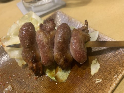 続いてせせりが登場しました!このせせりもめちゃめちゃ美味しい~!せせりって鶏肉の中で一番貴重らしいです!20キロ鳥をさばいて1キロくらいしか取れないんですって!大切にいただきます。