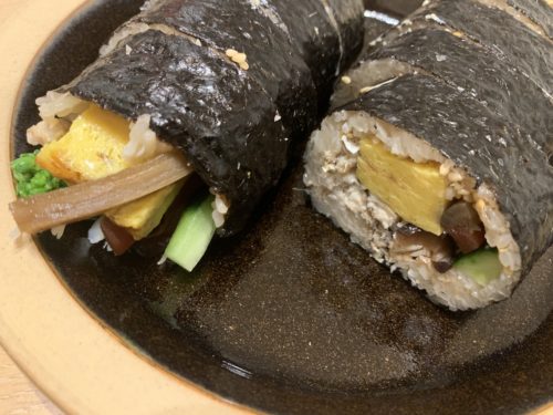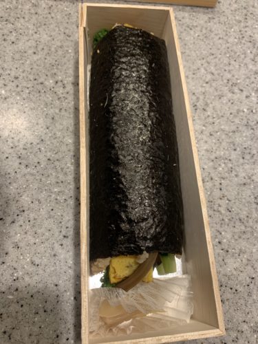 ということで当日になって受け取り家に持ち帰ってきました。尾前さんの恵方巻、どんな感じか楽しみです。