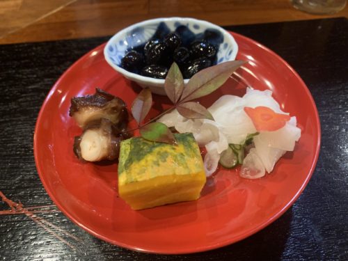 お正月明けでしたので、黒豆や酢漬けなど季節ながらのお料理を盛り合わせてくださいました。どれも美味しいのですが、このタコにびっくりしました。すごく美味しい!炊き上がりが素晴らしい!ママさんには言えなかったけど、食べ終わってお店を出た後一緒に伺った方にすげ~美味しいタコでしたね~と言いあったほど。