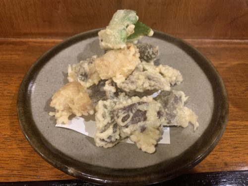 最近笑寅さんではホルモンの天ぷらが食べられるようになっていると聞いていたので、お願いしてみました!特製のタレにつけていただいてみると、美味しい~!これぞ広島名物ホルモンの天ぷらですね!