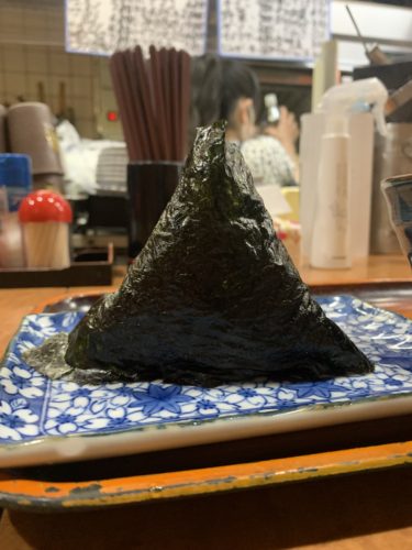 そしてそしてうどん定食にはあれがついてきます。あのさざんかさんの美味しいおむすびが!中身は昆布!あ~これこれ!いつもは飲んだ後におむすびをいただいていますが、この日はしらふでいただくおむすび!