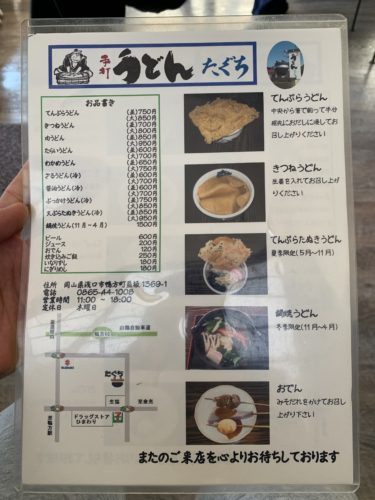 さて、昨日ご紹介した岡山の天神そばの後に所用をすませてどうしようかな~と思っていると、せっかく岡山にきたし時間があるのでもう一件立ち寄ってみようということで知人にお勧めしてもらっていたこちらのお店に伺いました。お店の名前は手打ちうどんたぐちさんです。