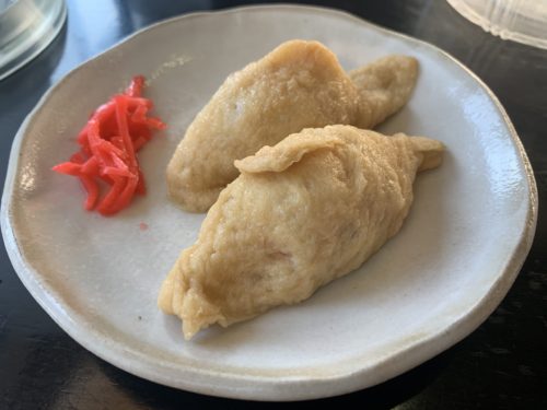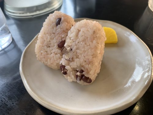 待っている間にみなさんがおにぎりなどを取りに行っているのをみて、私も赤飯むすびといなりずしをチョイスしました。実は私は赤飯大好きなんです。毎日赤飯でもいいくらい!お餅やさんとかで売っている赤飯は必ず買ってしまうくらい。笑
