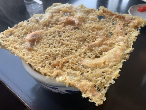 待望の天ぷらうどんが登場しました!ええ!ええええ!天ぷらが器からはみ出ている!びっくりしました!かき揚げ天ぷらですね!崩しながらいただきます。美味しい~!