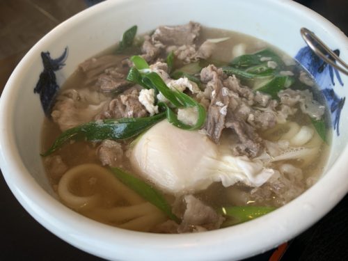 続いて肉うどんが登場しました!この肉うどんもこれまた美味しい!お肉の甘みがお出汁に加わってさらに美味しく!肉うどんおすすめですよ!
