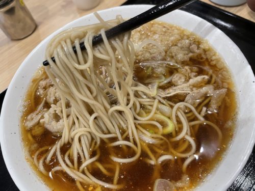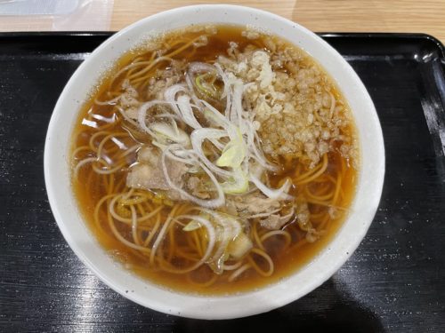 そしてまずは私の肉そばが登場しました!お肉の甘みがお出汁にしっかりのっているいい香りがします。お出汁からいただくと、、、うま!めちゃめちゃお出汁美味しい!お肉もおいしいし、お蕎麦も全然美味しい!