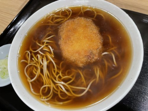 そこへ先輩のコロッケそばが!ほんとだ!コロッケ入ってる!